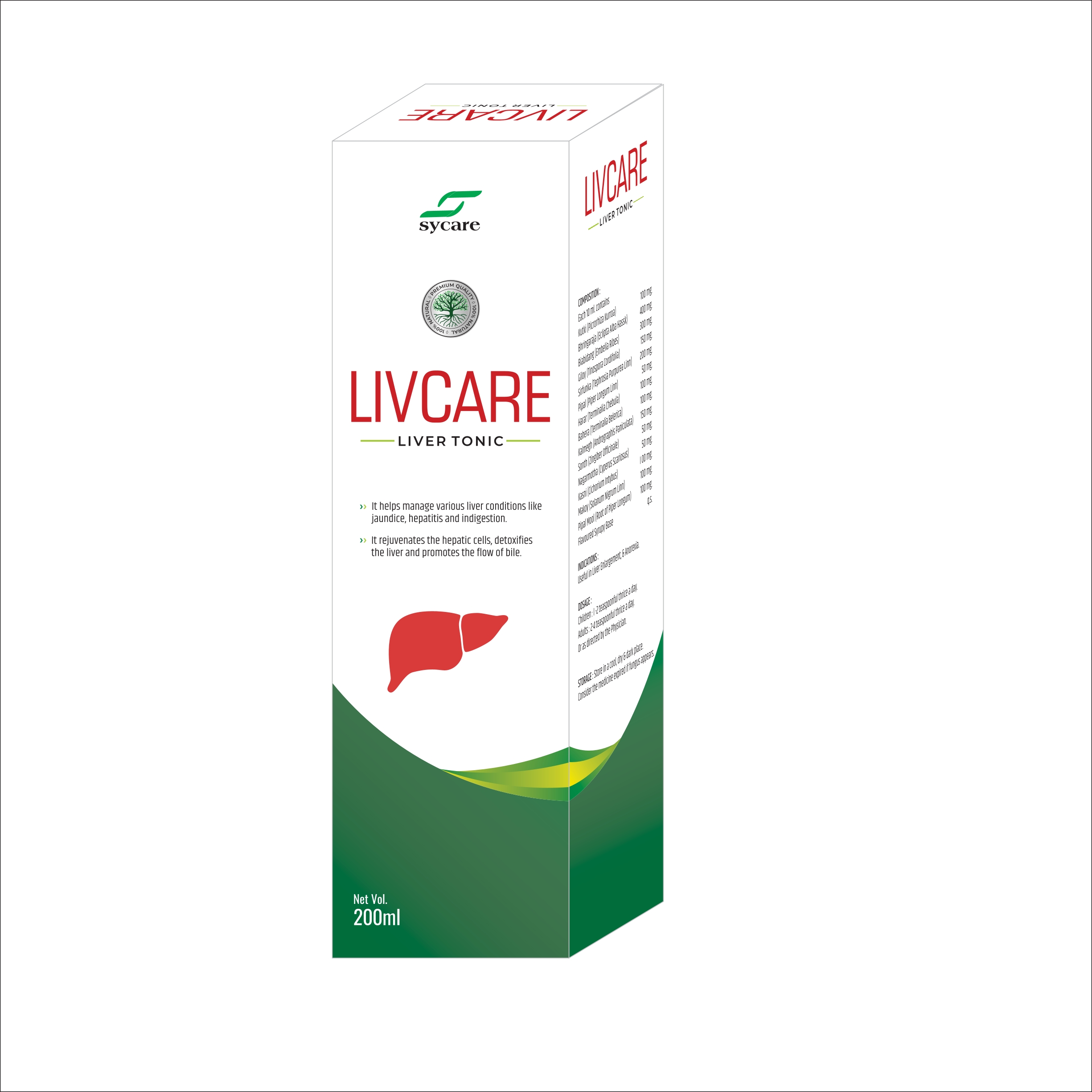 LIVCARE is a comprehensive Ayurvedic liver corrective and protective tonic formulated to safeguard the liver against various toxins and improve overall metabolic health. Combining potent hepatoprotective herbs, LIVCARE helps in the regeneration of liver cells, improves bile secretion, and ensures healthy digestion and appetite.